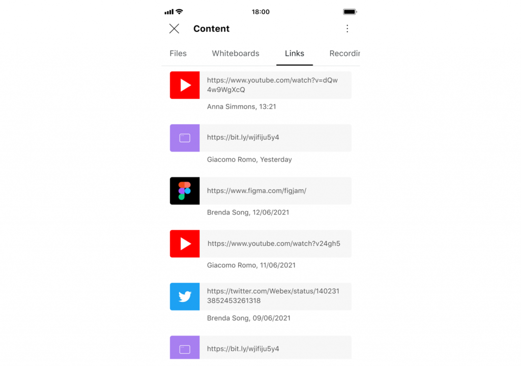 ¿Está buscando un enlace que alguien envió hace meses o semanas? Ahora, puede ver toda su actividad de enlace en la aplicación móvil, todo en un solo lugar dentro de un espacio. Toque «Enlaces» en la pestaña Contenido de su espacio para ver los enlaces compartidos en orden cronológico.